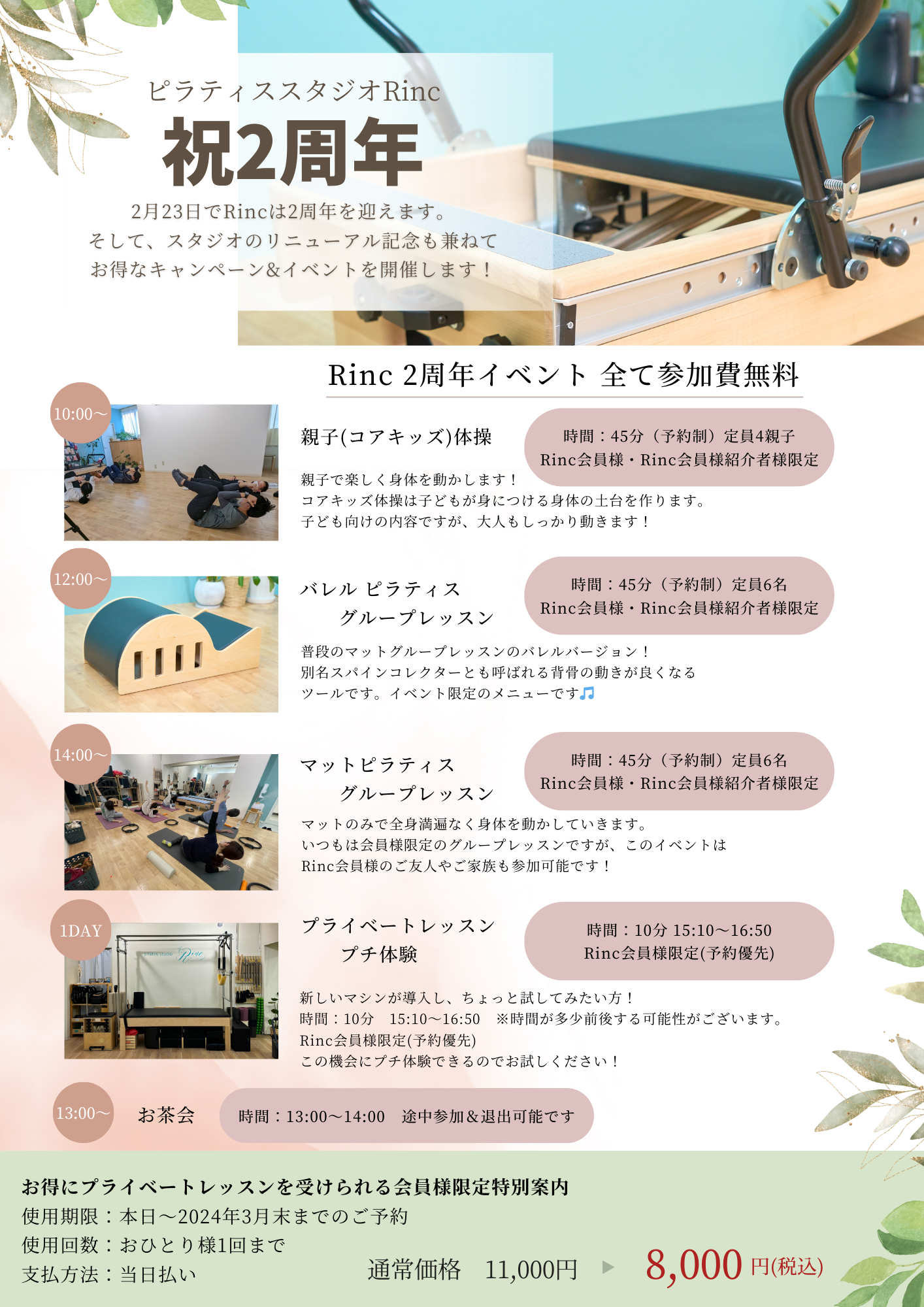 日頃の感謝の気持ちを込めて、2周年の2月23日にRinc会員様、Rinc会員様紹介者限定の無料イベントを行います!